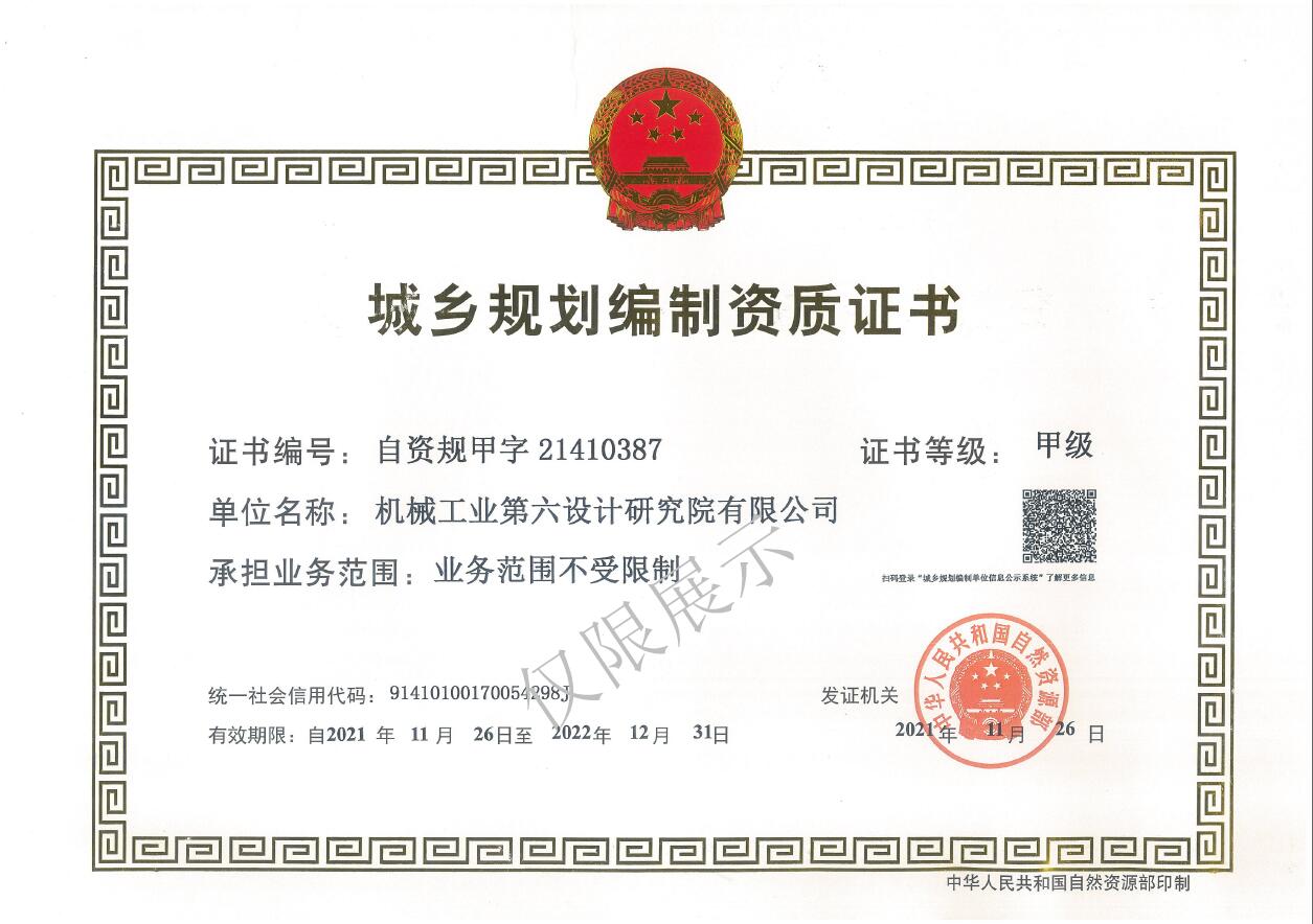 城鄉(xiāng)規(guī)劃編制甲級(jí)資質(zhì)證書(shū)