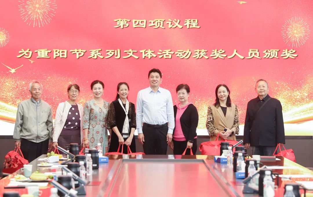 ▲顧曉山為重陽節(jié)文體活動中獲獎的離退休老同志頒獎