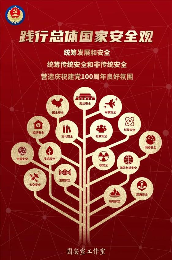 今年4月15日是第六個(gè)全民國(guó)家安全教育日。今年的活動(dòng)主題為“踐行總體國(guó)家安全觀,統(tǒng)籌發(fā)展和安全,統(tǒng)籌傳統(tǒng)安全和非傳統(tǒng)安全,營(yíng)造慶祝建黨100周年良好氛圍”。