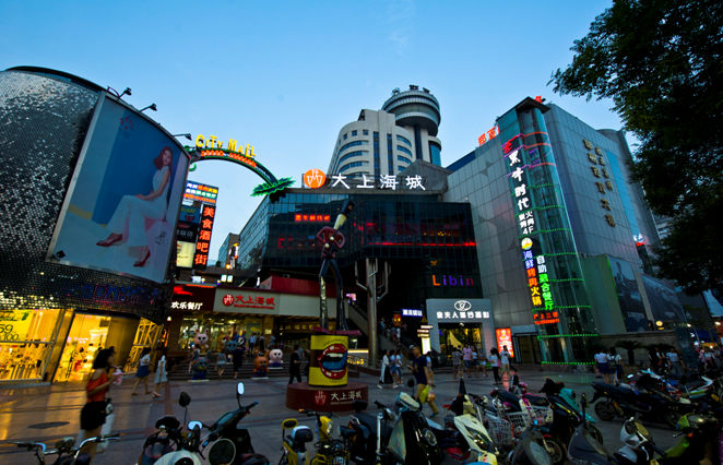鄭州“大上海城步行街”,位于鄭州市核心商業(yè)區(qū)內(nèi)二七路、東太康路、人民路所夾“金三角”的核心原點,位居鄭州市最繁華的“二七商圈”黃金腹地??偨ㄖ娣e88211㎡,地上六層,地下二層。整個項目由上海商城、金街、銀街、展示中心、城市主題廣場、酒店公寓等系列項目組成,采用引導(dǎo)國際潮流的第三代步行街設(shè)計理念,由多條步行街組成,并融入了諸多的廣場、空中走廊、地下停車場等系列完善設(shè)施,是一個集購物、休閑、娛樂、飲食、影視、會展、康體、旅游等多種功能于一身的大型購物中心。商業(yè)效應(yīng)有效輻射了中原豫、魯、冀等地區(qū)的近2億人口,建成后成為了中原地區(qū)的商業(yè)標(biāo)志及財富制高點,并為鄭州乃至中原地區(qū)的消費者提供了真正“一家逛街,一天休閑,一站購物”的快樂shopping體驗,完美詮釋都市人時尚、情趣的生活哲學(xué)。